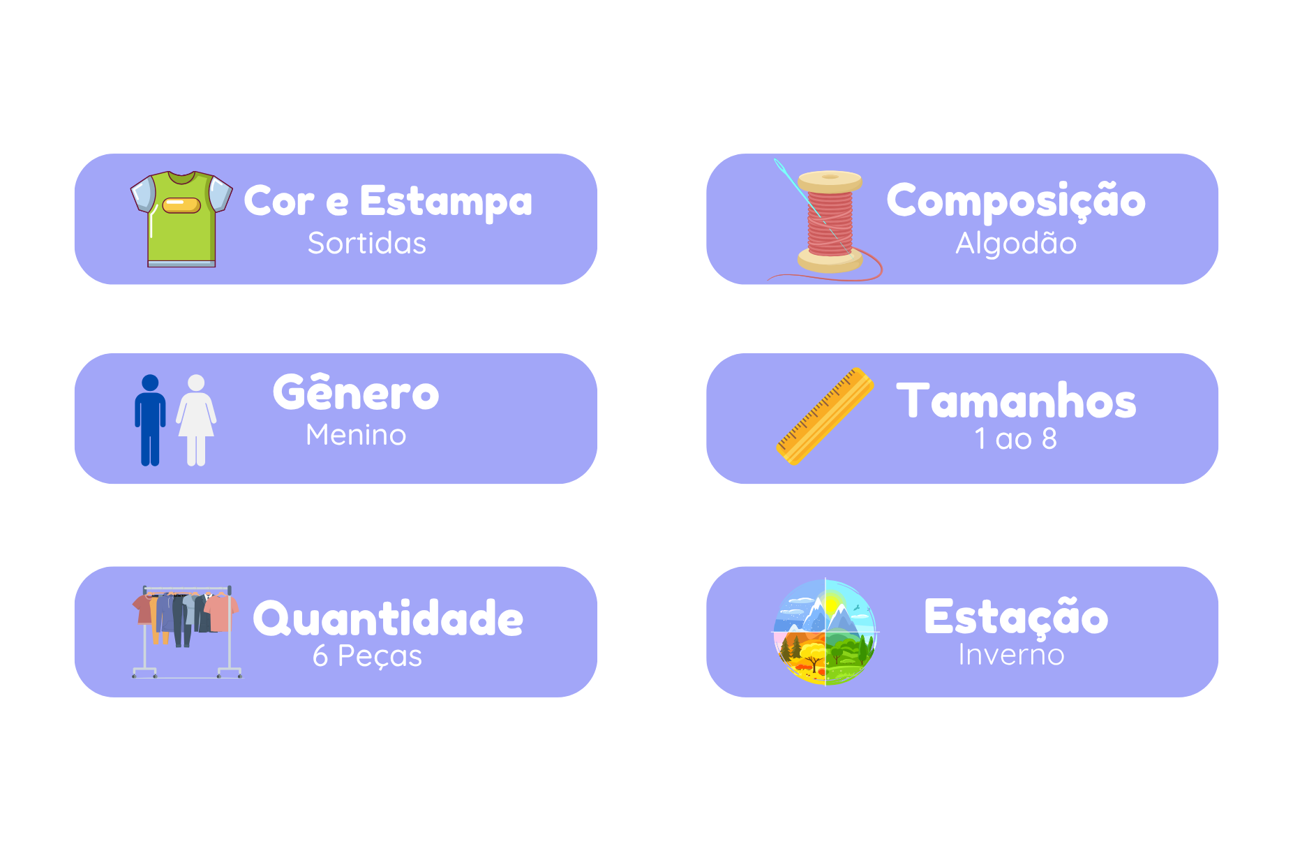 👕 Quantidade de Peças: 6 Peças (3 Blusas de Moletom + 3 Calças de Moletom).