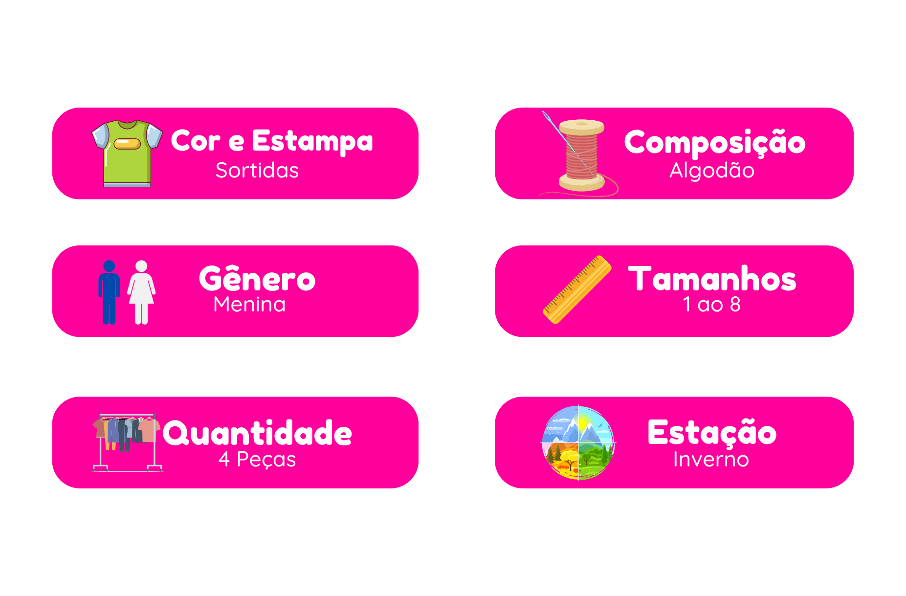 ✨ Composição: As peças são fabricadas em tecido de algodão.