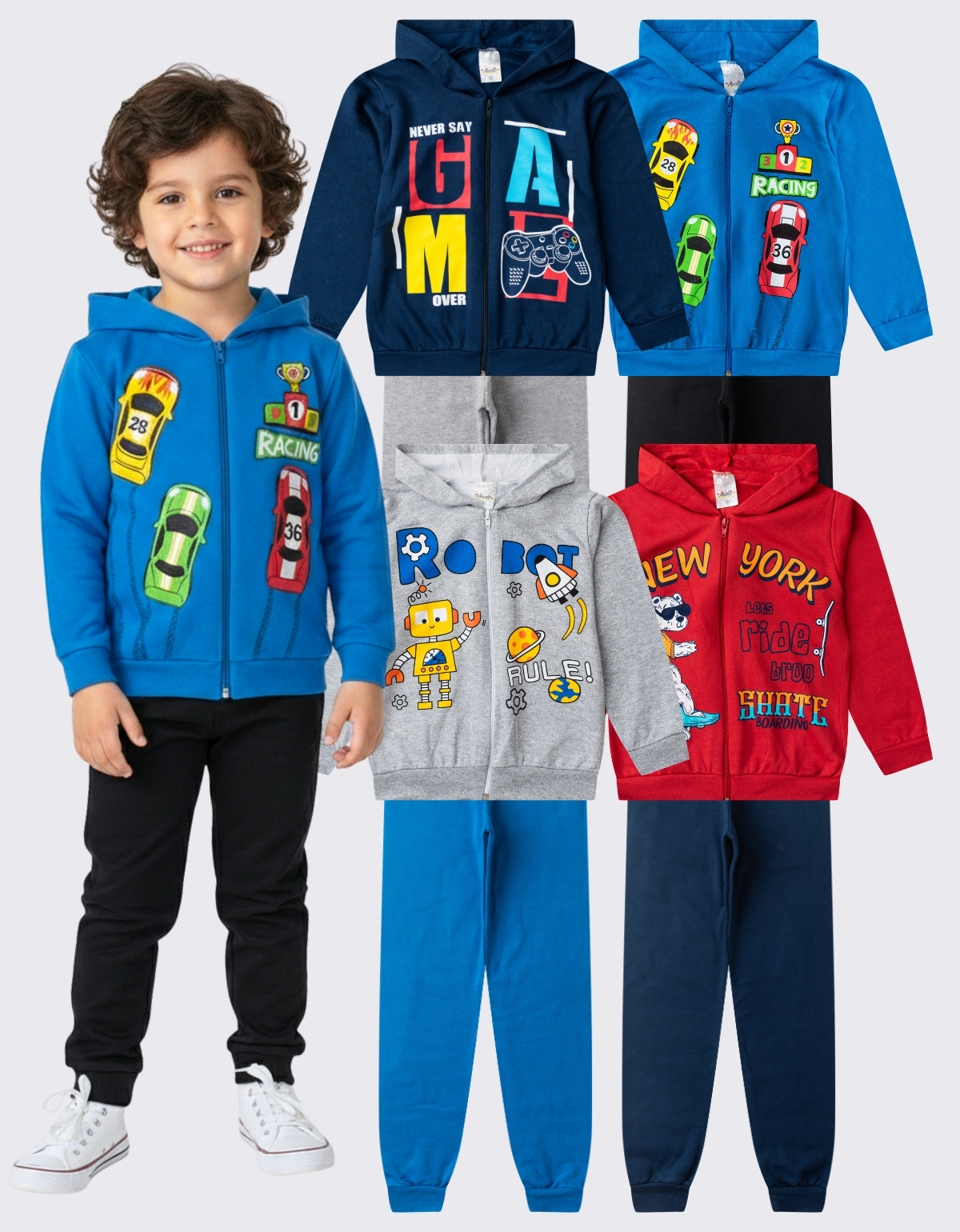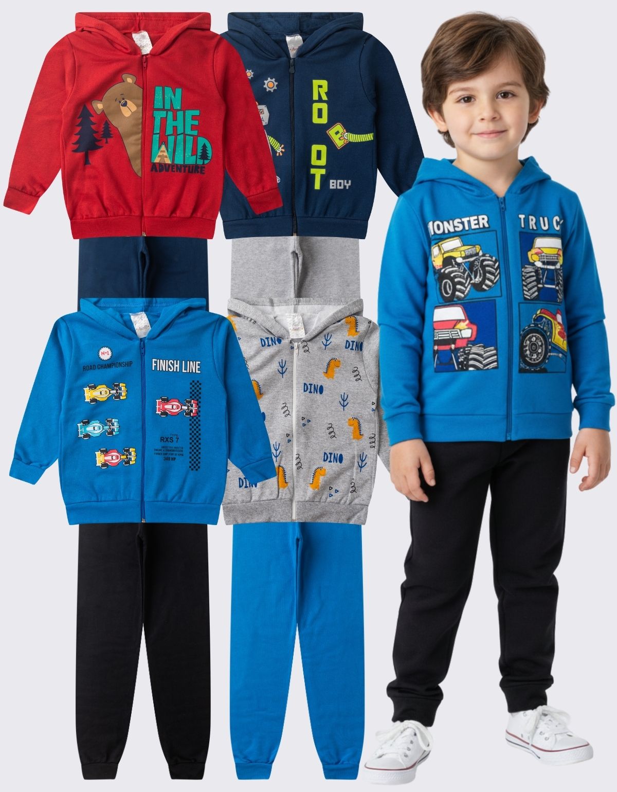 Apresentamos o nosso KIT 4 MOLETOM INFANTIL ZIPER MENINO INVERNO – Feito especialmente para os pequenos aventureiros enfrentarem o frio com estilo e abraçarem a estação com conforto.