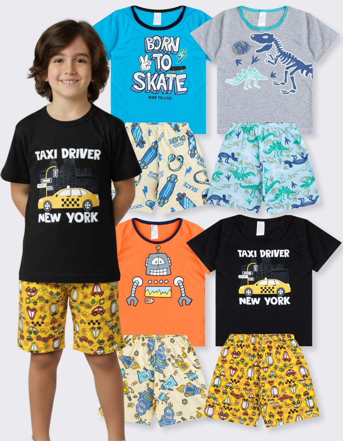 Apresentamos o nosso KIT 4 PIJAMAS MENINO ROUPA INFANTIL VERÃO – Feito especialmente para os pequenos aventureiros enfrentarem o frio com estilo e abraçarem a estação com conforto.